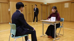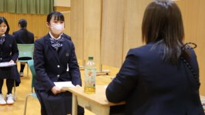 模擬面接授業では、「中学校生活で頑張った事」「卒業したら挑戦したい事」