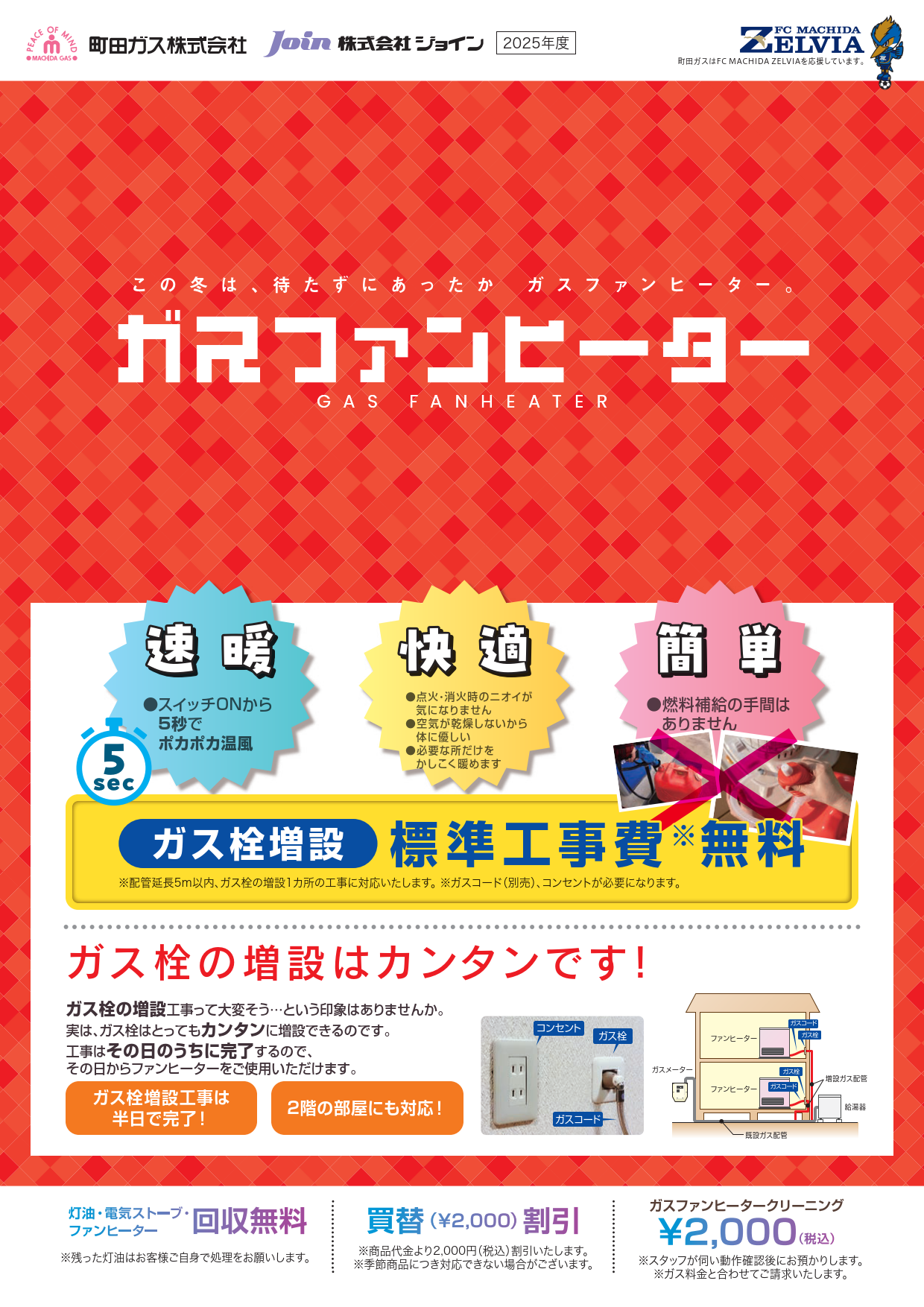 <秋冬の暖房機器の準備はされていますか?町田ガス・ジョインでは「速暖」「快適」「簡単」なガスファンヒーターをおすすめしています。>