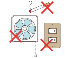 • 絶対に換気扇や電灯スイッチには手を触れないでください。