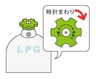 • メーターガス栓・容器バルブも忘れずに閉めてください。