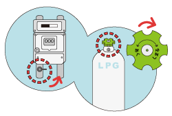 - 揺れがおさまったら二次災害を防止するためにガス機器をすばやく消してガス栓を閉めてください。